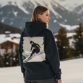 The Chaos Coordinator Oversized Hoodie celebrates mastering life’s unpredictability. On the front, the phrase “chaos coordinator” makes a playful, empowering statement. On the back, a striking illustration shows a skier carving down a Pyrenean slope - motion, freedom, and unstoppable drive captured in vivid detail.